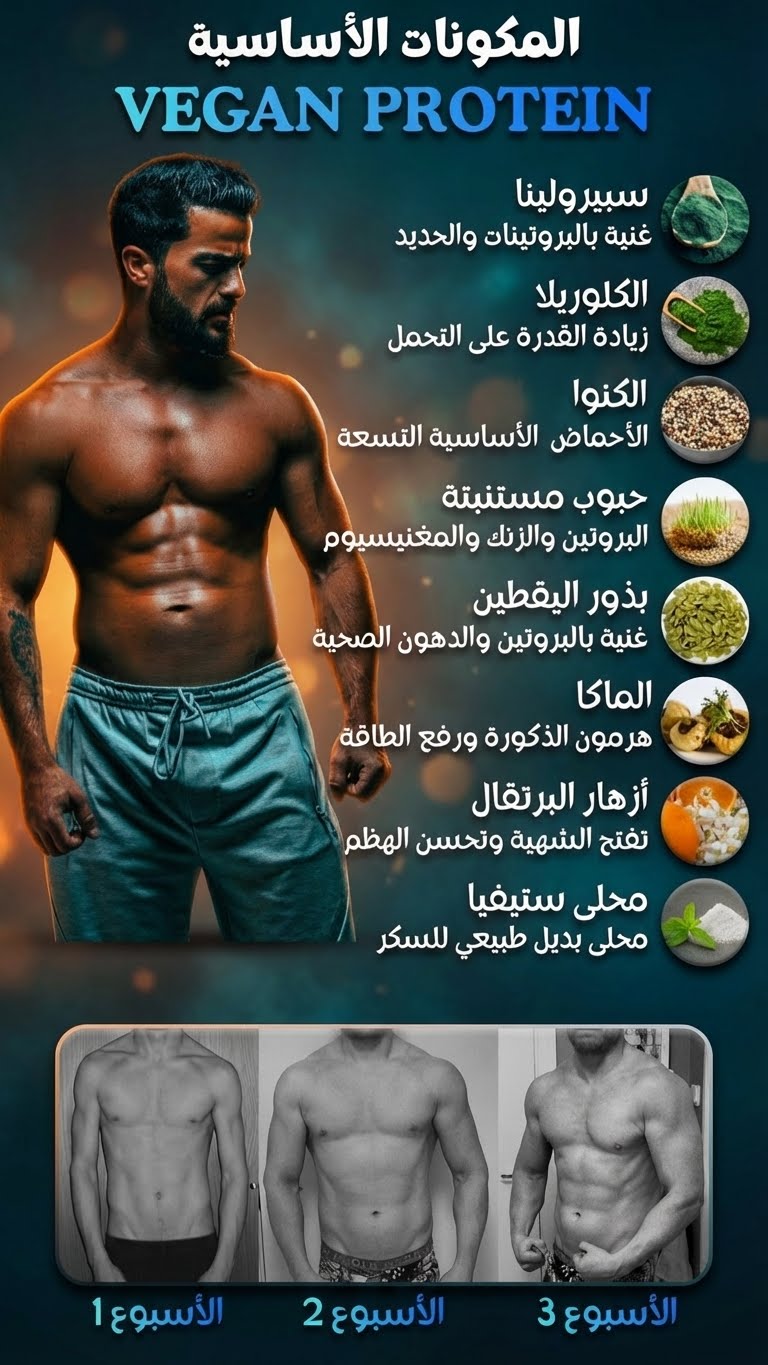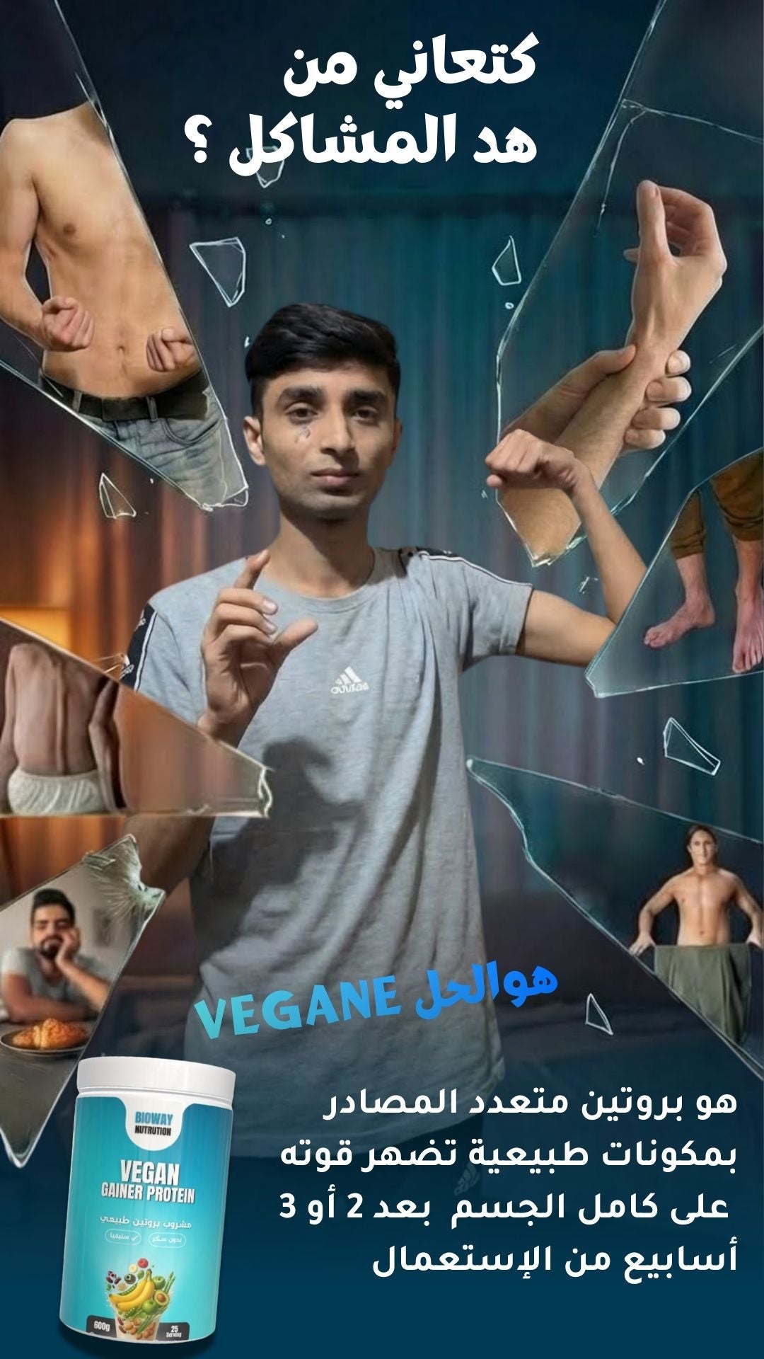 Vegan Protein ! بروتين نباتي متكامل يفتح الشهية، يزيد الوزن بسرعة، ويمنحك قوة وطاقة يومية.